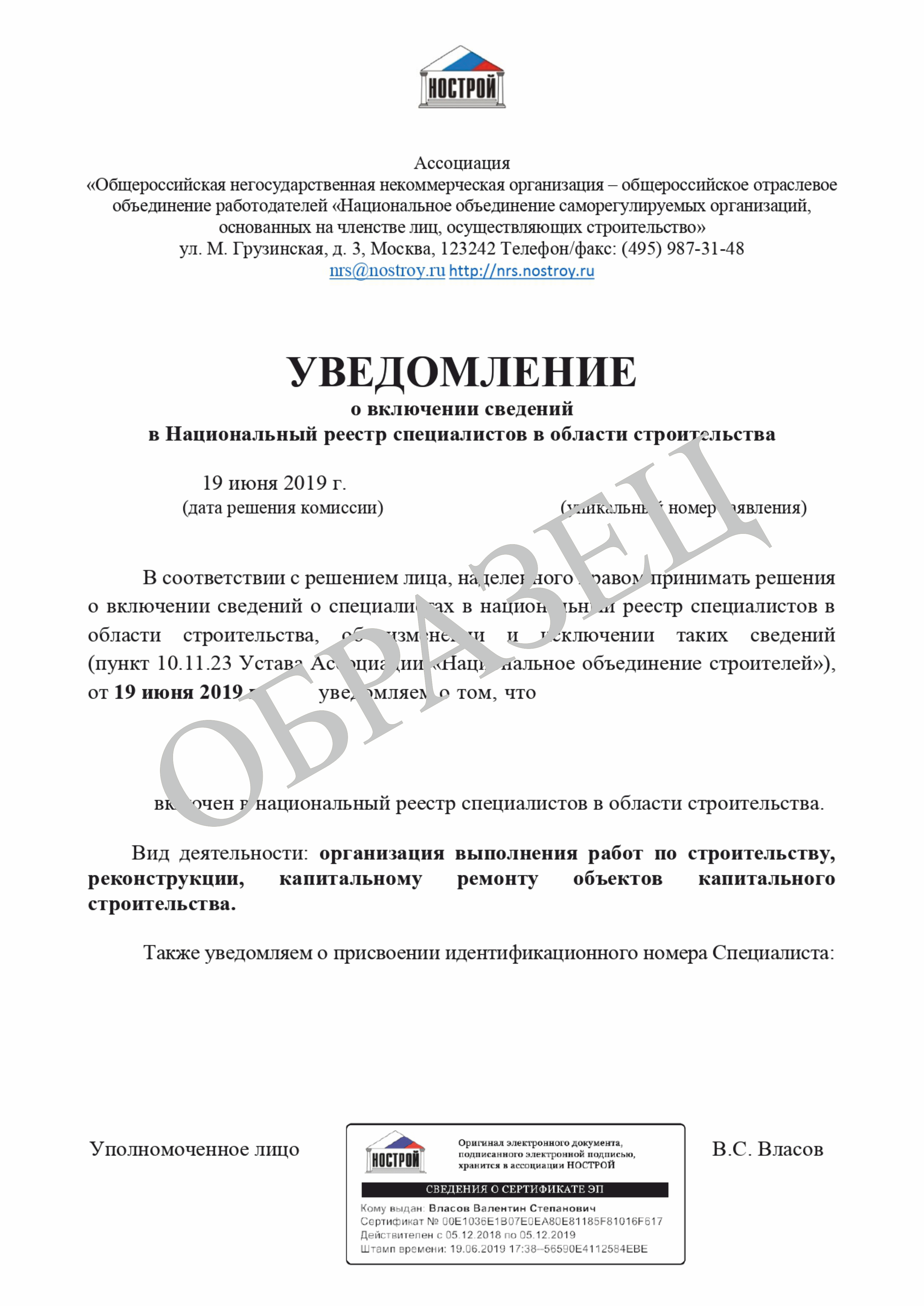 Получение уведомления о включении в реестр. Мы контролируем весь процесс: от подачи заявки до получения официального подтверждения. По завершении процедуры вы получаете уведомление о включении специалиста в Национальный реестр специалистов.
