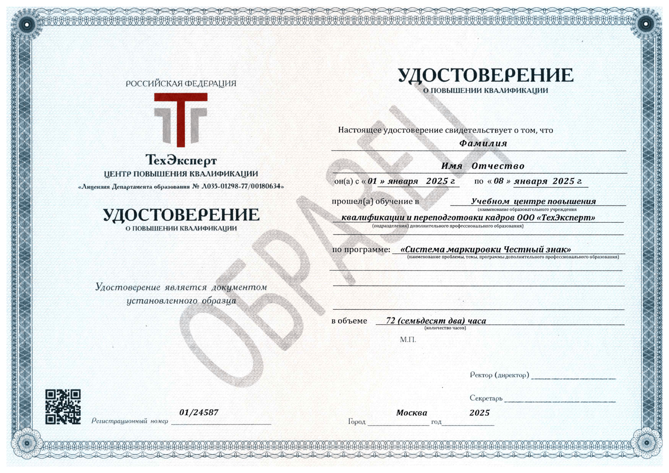 Обучение специалиста по Честному ЗНАКу в УЦ «ТехЭксперт» с получением удостоверения позволяет занять эту штатную должность и профессионально выполнять перечисленные обязанности.