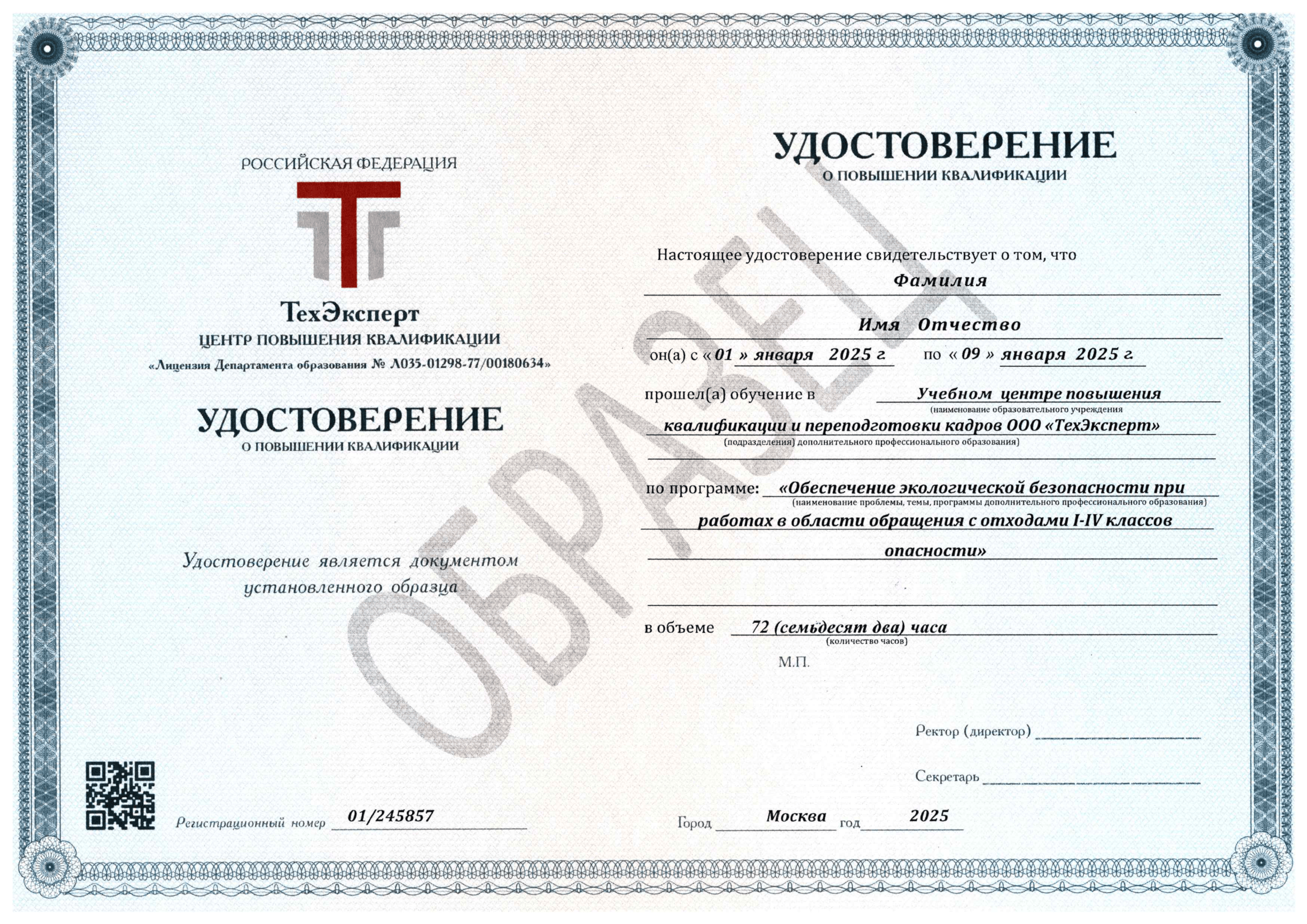 Чтобы пройти обучение по отходам и получить удостоверение повышения квалификации на 5 лет или бессрочный диплом, выберите подходящий курс из перечня с помощью наших консультантов.