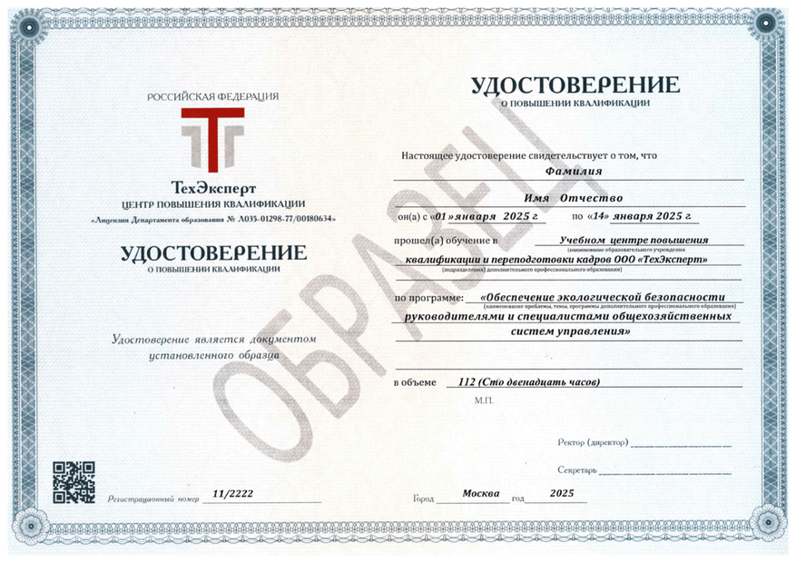 Условием получения удостоверения ПК является наличие профильного экологического образования, которое также можно получить в УЦ «ТехЭсперт» по программе профессиональной переподготовки